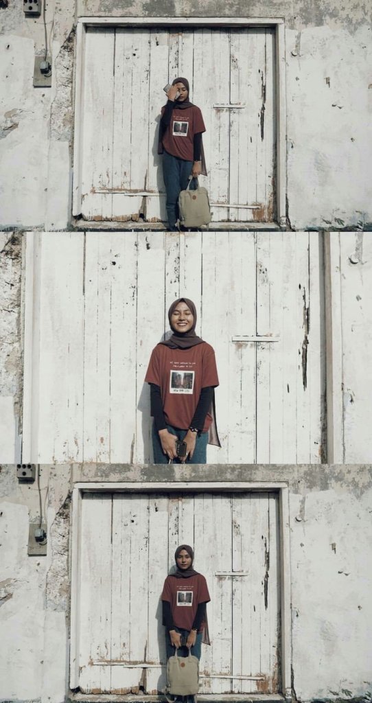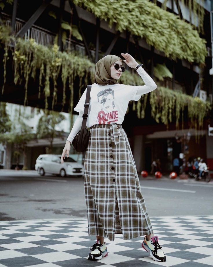 Kalian bisa memakai hijab instan atau pasmina dengan sesimple mungkin dan tidak menutupi gambar yang ada di kaos kalian.