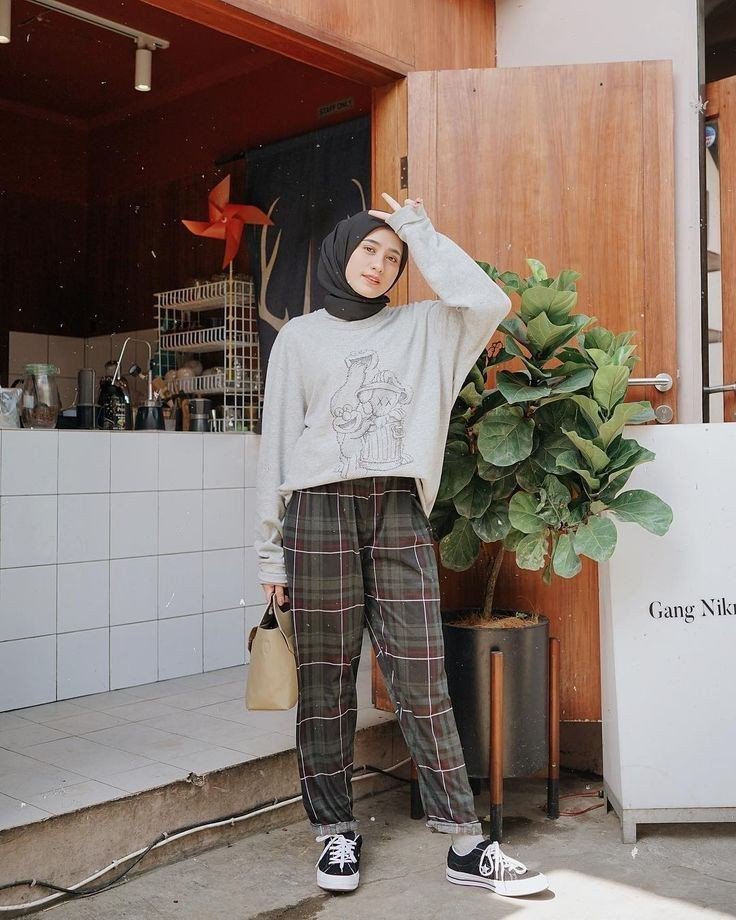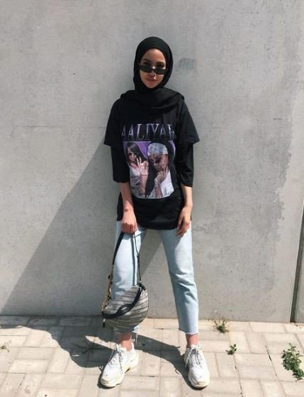 Menggunakan kaos yang oversized bisa membuat penampilan yang catchy dan juga tidak terlalu menampakkan lekukan tubuh.
