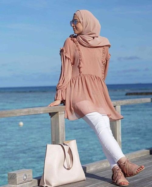 Tetapi, kita tetap bisa memakai kaos pendek itu loh meskipun kita berhijab. Jadi ga harus dipake dirumah saja ya hehe.